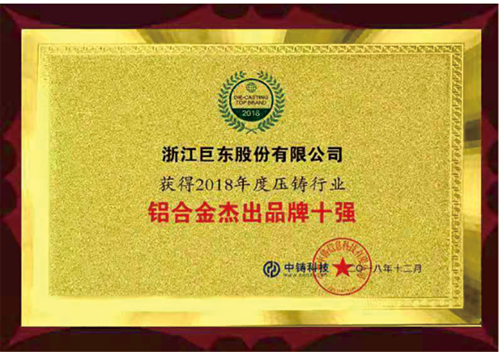 2018年度壓鑄行業鋁合金杰出品牌十強